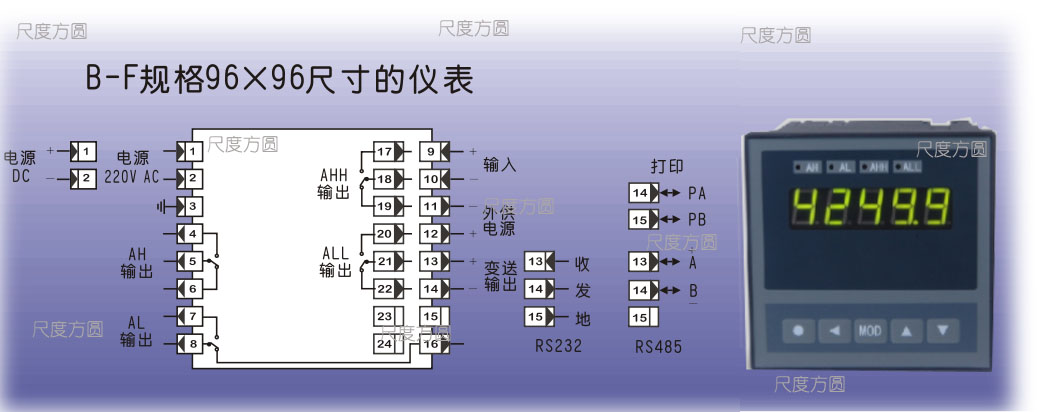 抗干扰设计,抗干扰能力达到III级 . 输入信号:热电阻,热电偶,直流电流,直流电压,远传压力表等。 外形尺寸:160×80(横/竖),96×96,96×48(横/竖) (XSE6型只有96×48尺寸规格)